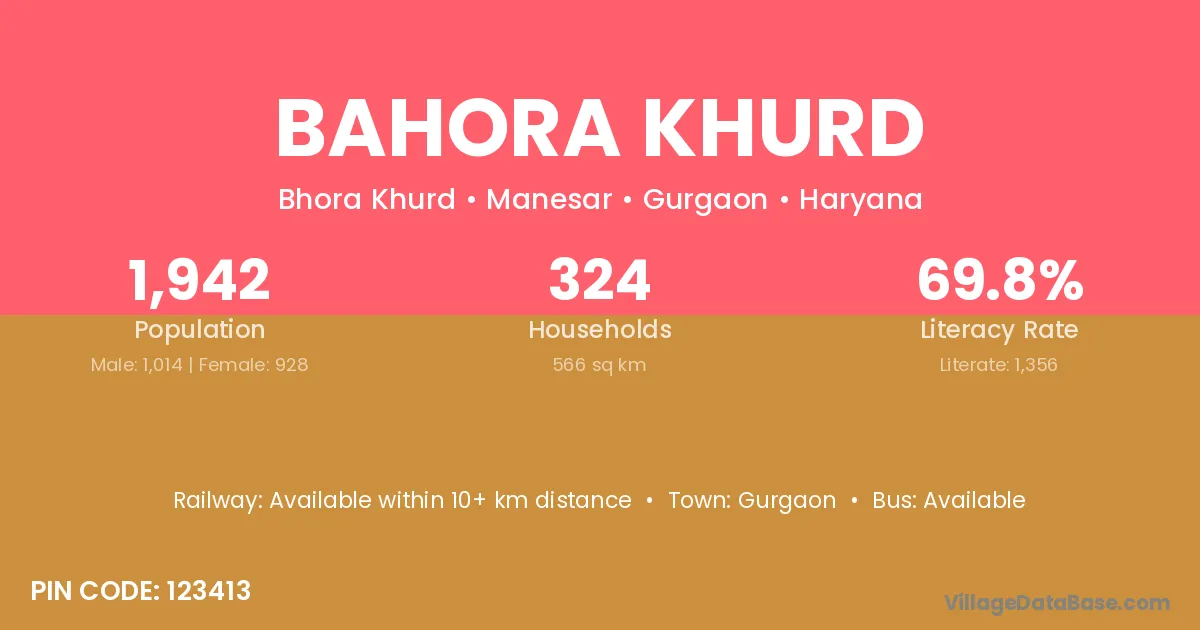 Gurgaon is the nearest town to Bahora Khurd village for major economic activities