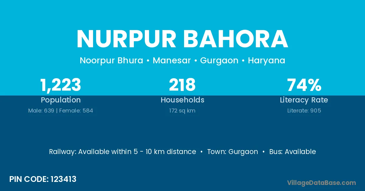 Gurgaon is the nearest town to Nurpur Bahora village for major economic activities