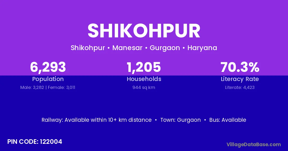 Shikohpur village has a total population of 6,293 people, of which 3,282 are males and 3,011 are females.