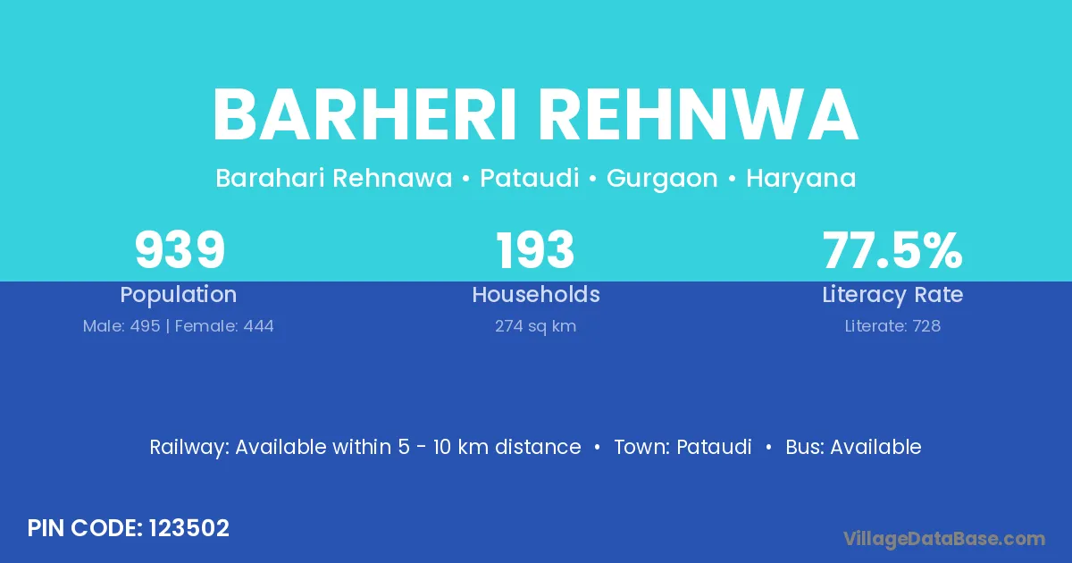 Pataudi is the nearest town to Barheri Rehnwa village for major economic activities