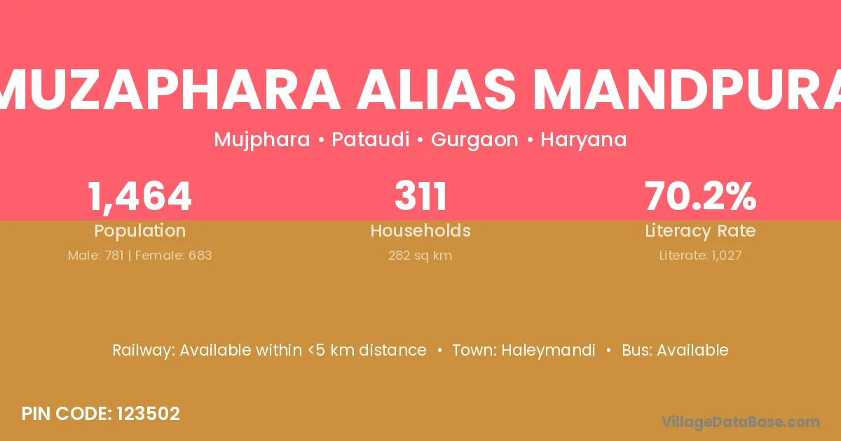 Muzaphara Alias Mandpura village has a total population of 1,464 people, of which 781 are males and 683 are females.