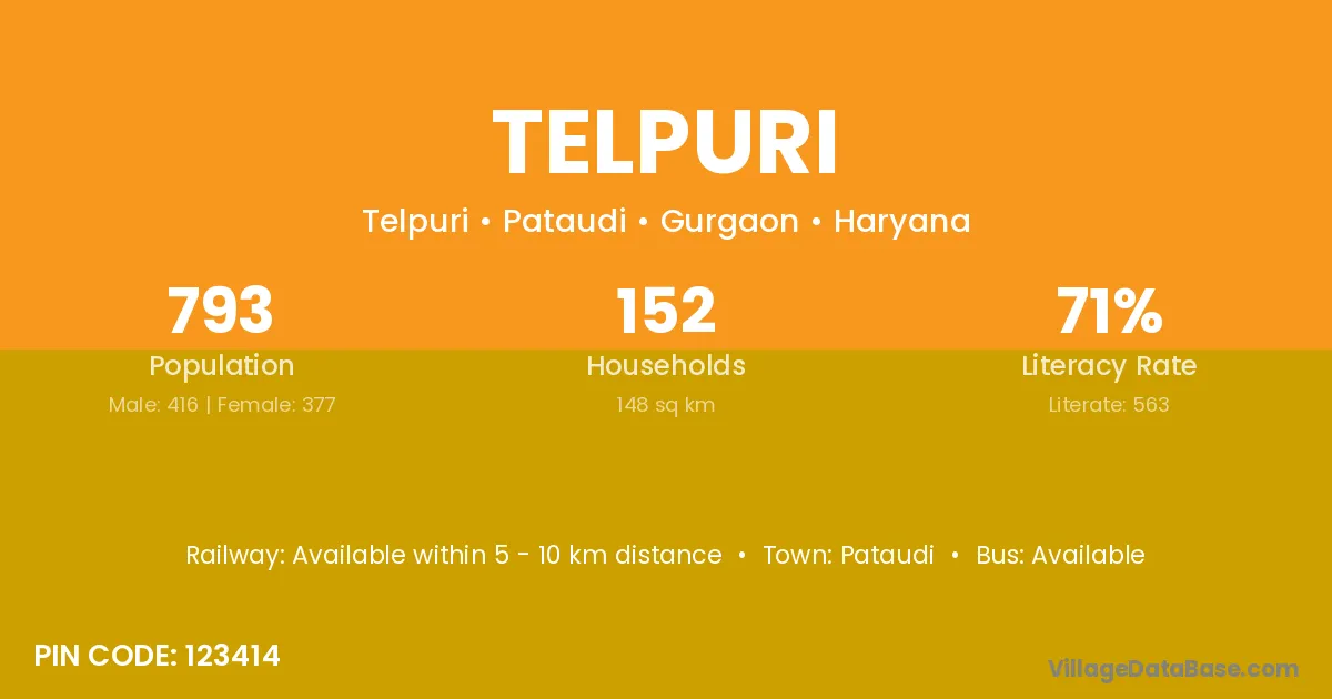 Telpuri village has a total population of 793 people, of which 416 are males and 377 are females.