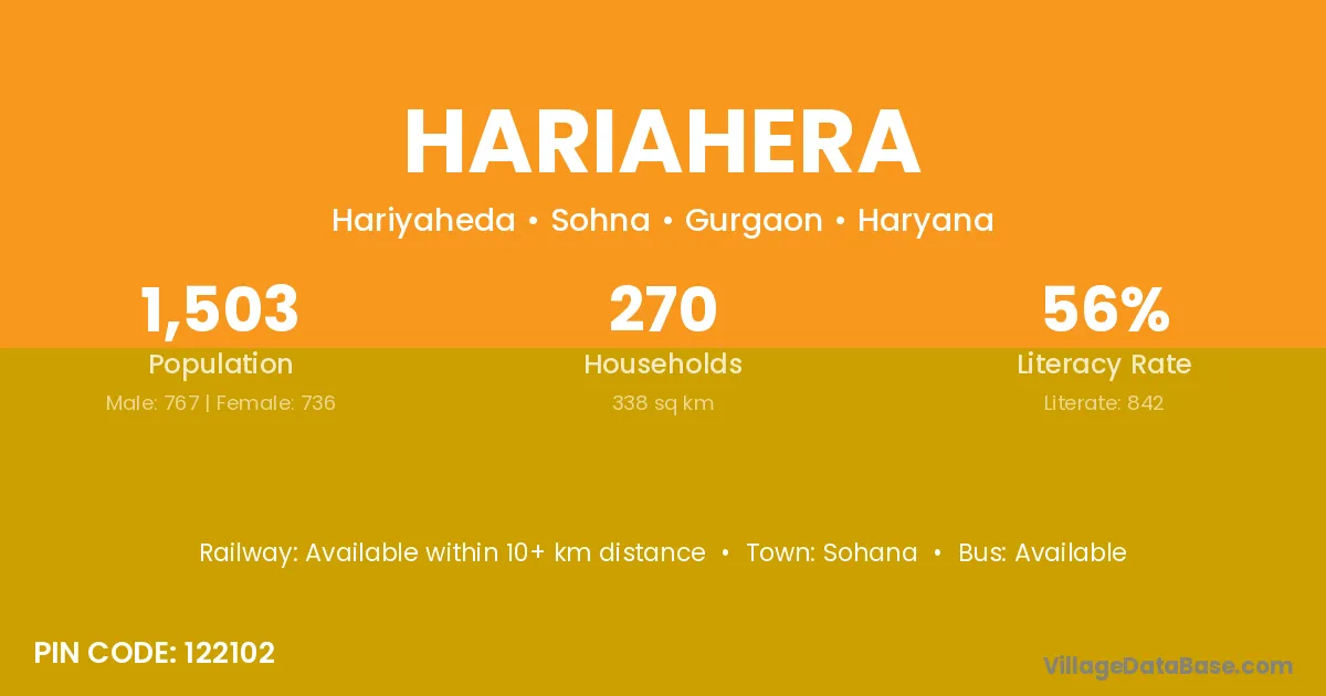 Hariahera village has a total population of 1,503 people, of which 767 are males and 736 are females.