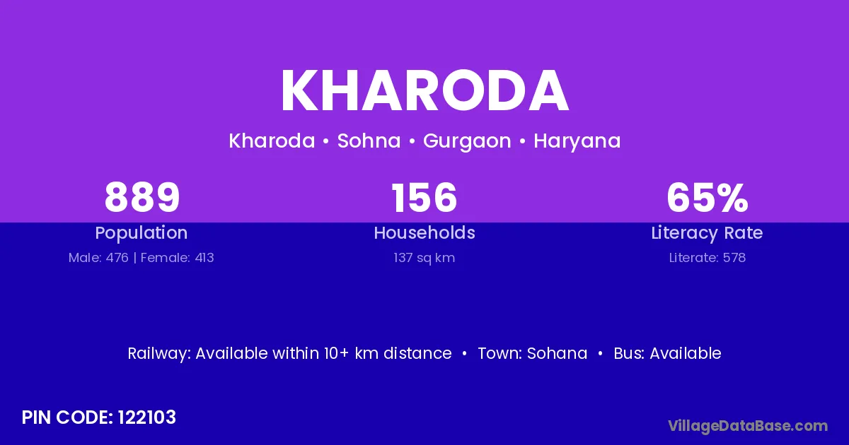 According to Census 2011 information, the village code of Kharoda village is 122103.