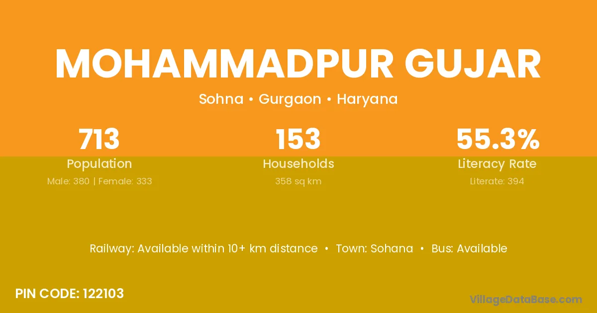 Mohammadpur Gujar village has a total population of 713 people, of which 380 are males and 333 are females.
