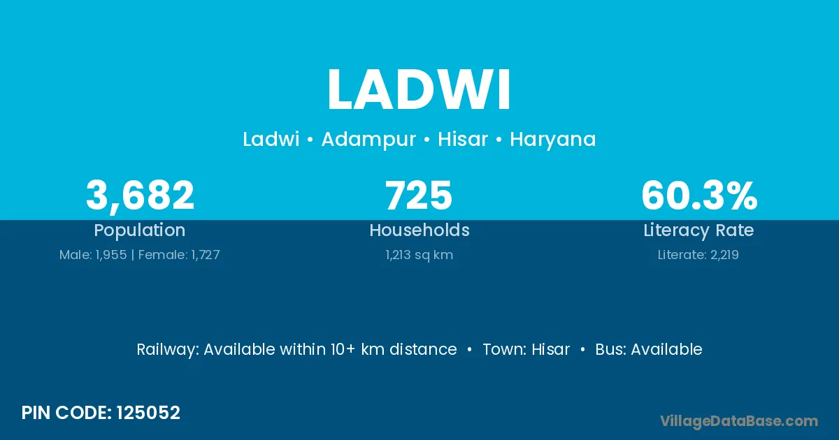Hisar is the nearest town to Ladwi village for major economic activities