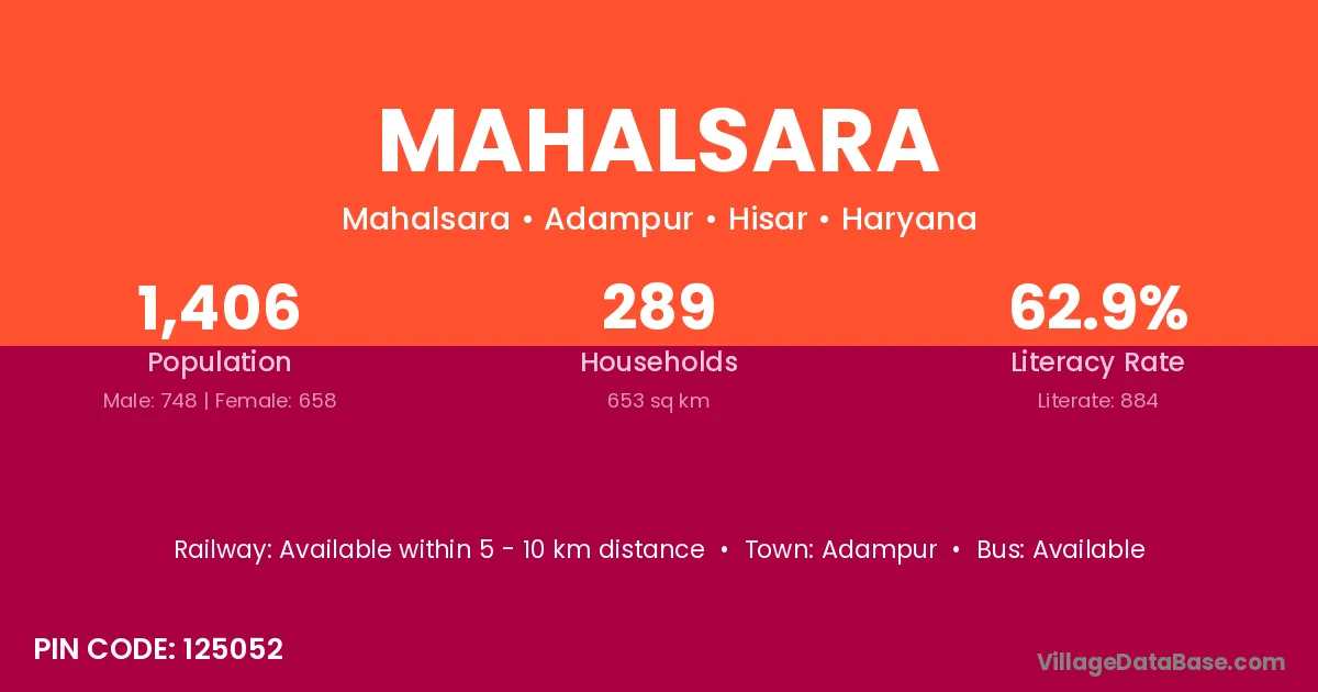 Adampur is the nearest town to Mahalsara village for major economic activities