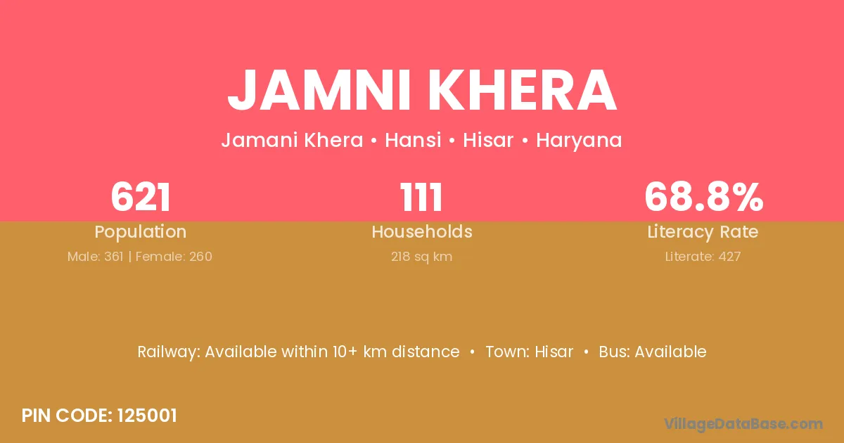 Hisar is the nearest town to Jamni Khera village for major economic activities