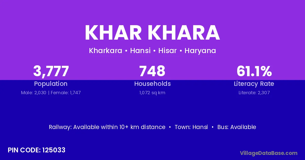 Hansi is the nearest town to Khar Khara village for major economic activities