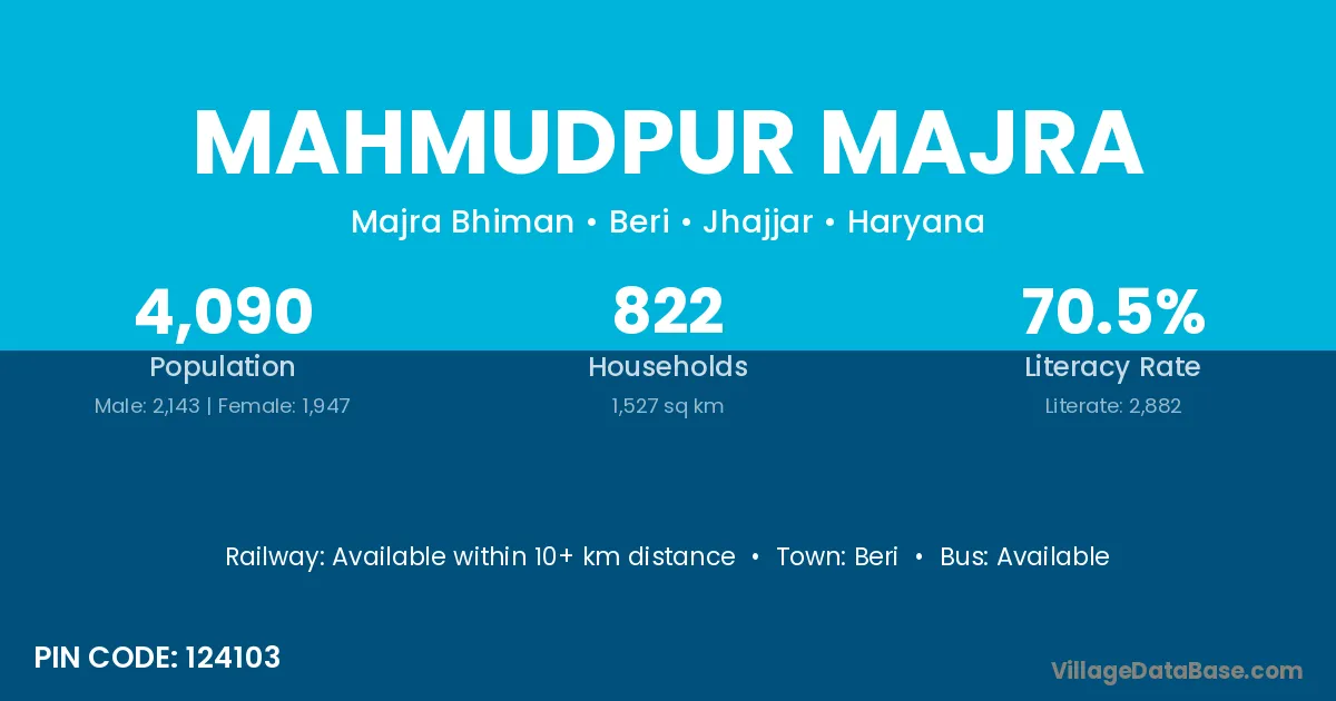 Beri is the nearest town to Mahmudpur Majra village for major economic activities