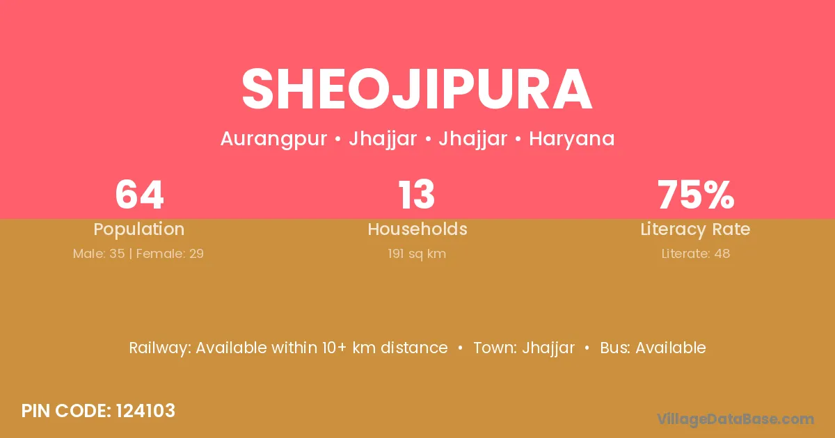 Jhajjar is the nearest town to Sheojipura village for major economic activities