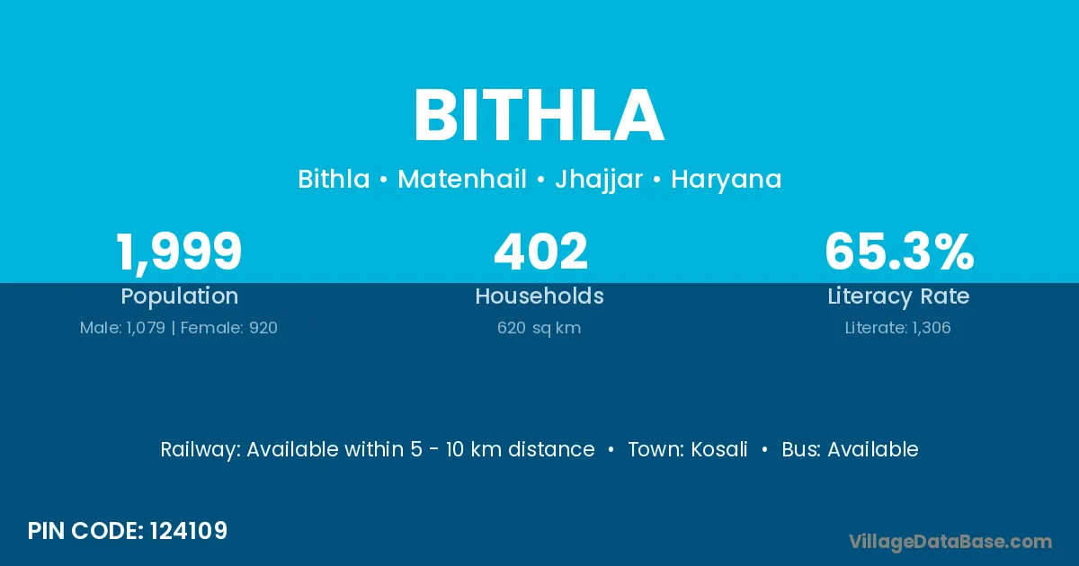 According to Census 2011 information, the village code of Bithla village is 124109.