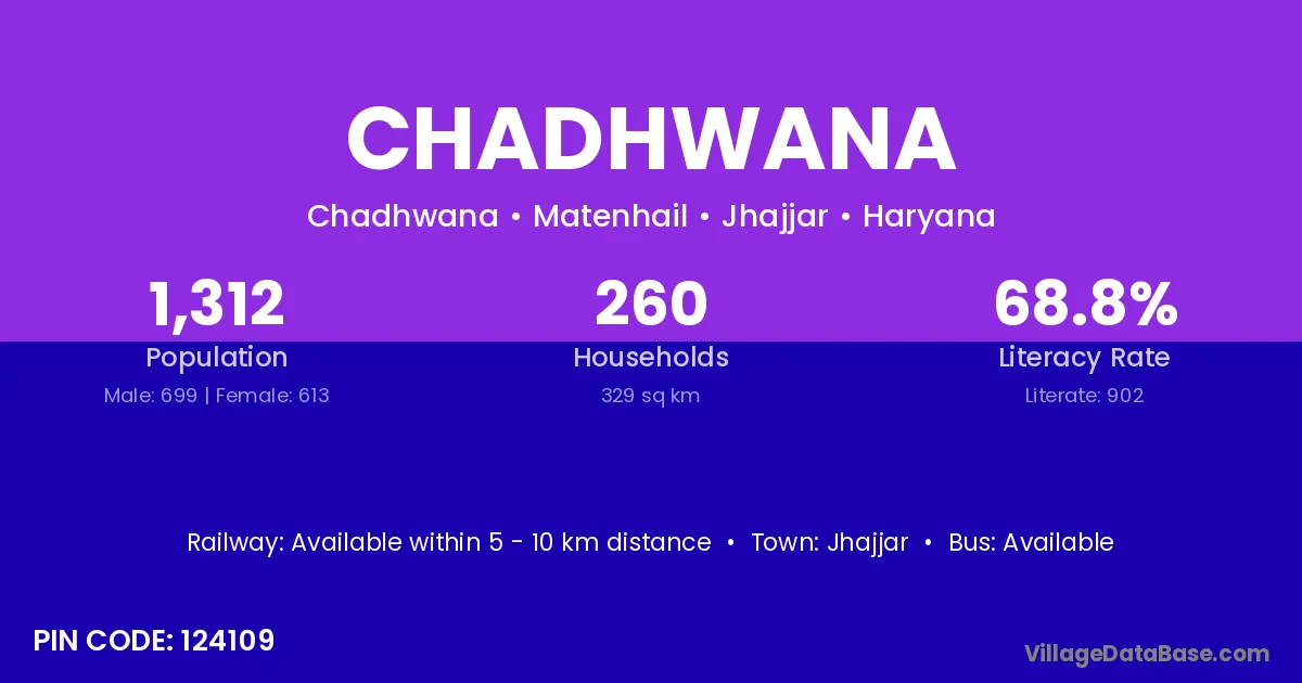 Jhajjar is the nearest town to Chadhwana village for major economic activities