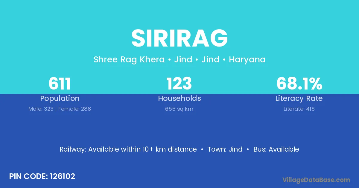 Jind is the nearest town to Sirirag village for major economic activities