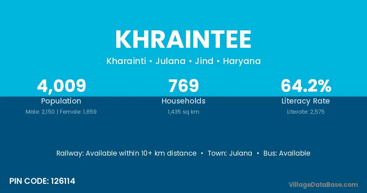 Julana is the nearest town to Khraintee village for major economic activities