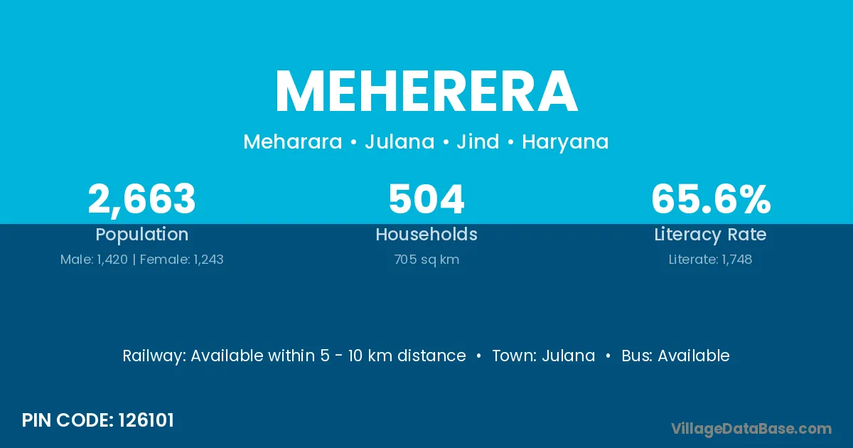 Julana is the nearest town to Meherera village for major economic activities