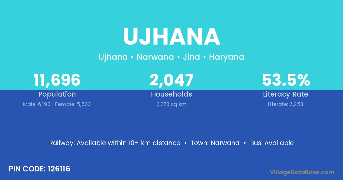 Ujhana village has a total population of 11,696 people, of which 6,193 are males and 5,503 are females.