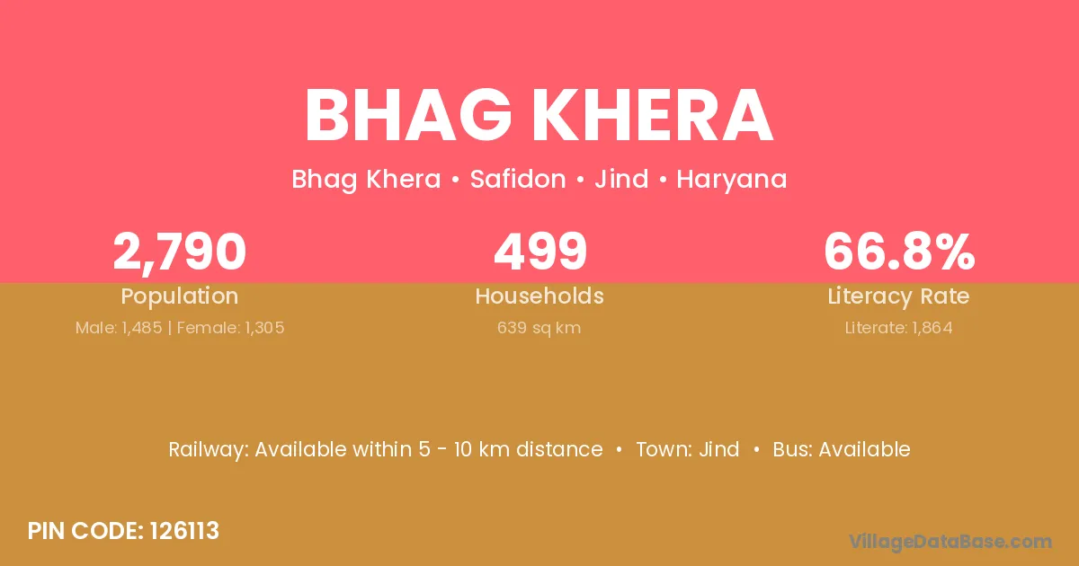 Jind is the nearest town to Bhag Khera village for major economic activities