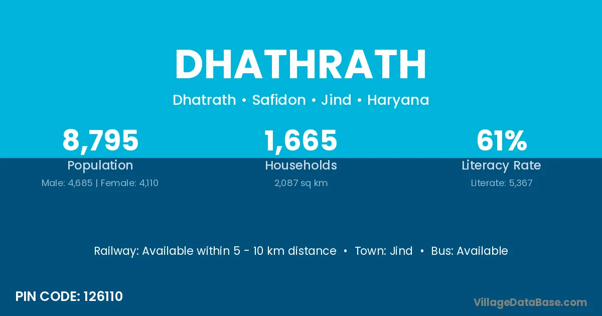 Jind is the nearest town to Dhathrath village for major economic activities