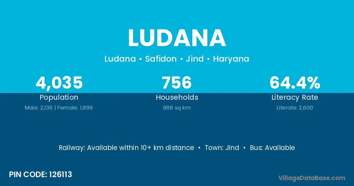 According to Census 2011 information, the village code of Ludana village is 126113.