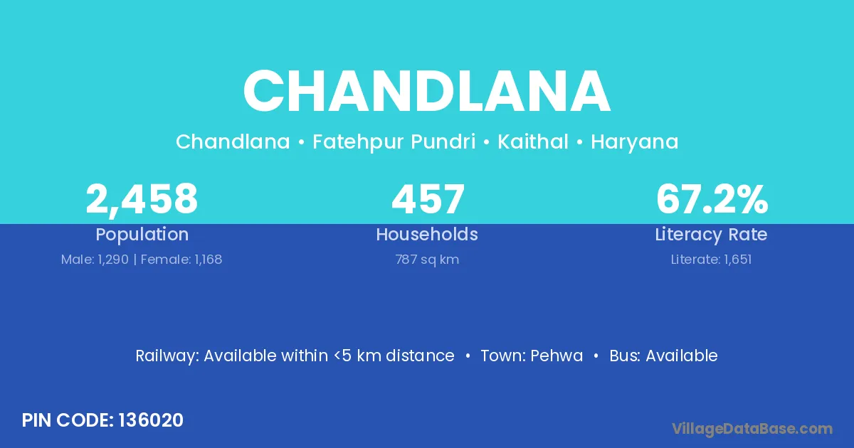 According to Census 2011 information, the village code of Chandlana village is 136020.