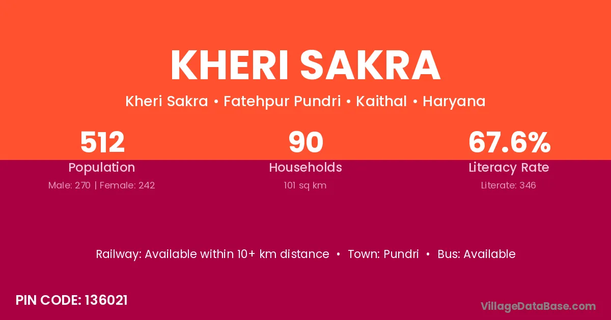 Kheri Sakra village has a total population of 512 people, of which 270 are males and 242 are females.