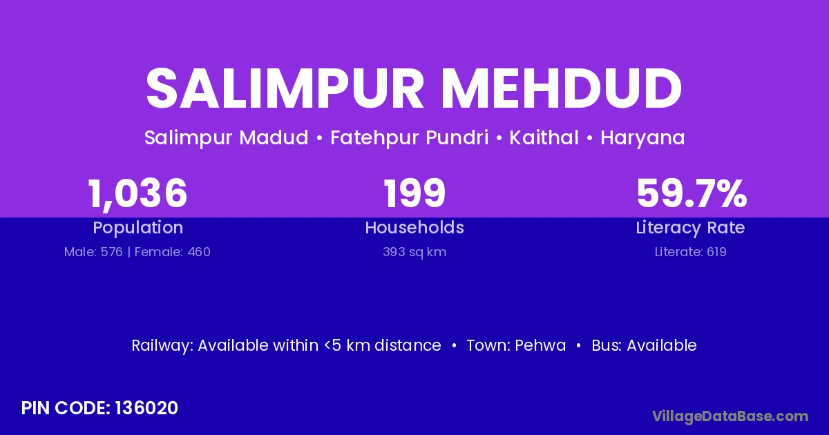 Pehwa is the nearest town to Salimpur Mehdud village for major economic activities