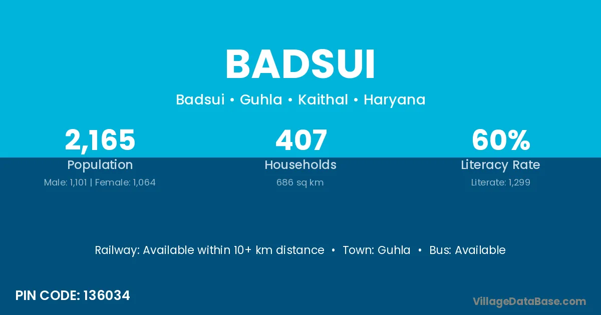 According to Census 2011 information, the village code of Badsui village is 136034.