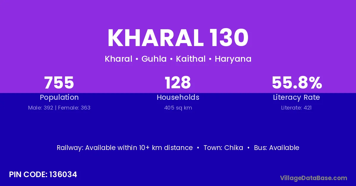 According to Census 2011 information, the village code of Kharal 130 village is 136034.