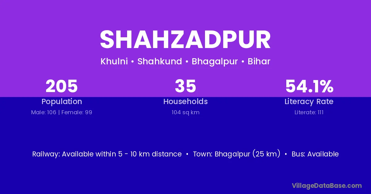 Shahzadpur village has a total population of 118 people, of which 64 are males and 54 are females.