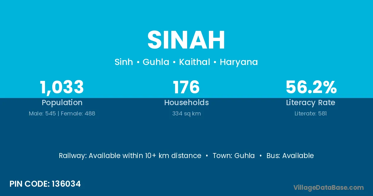 Guhla is the nearest town to Sinah village for major economic activities