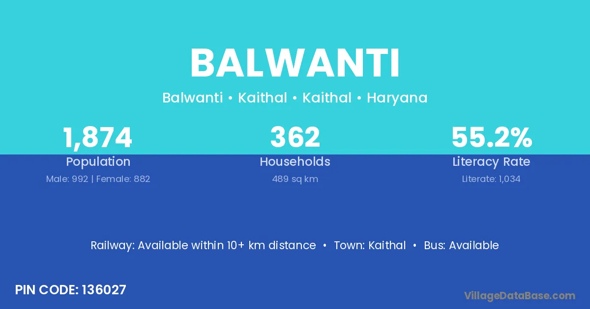 Kaithal is the nearest town to Balwanti village for major economic activities