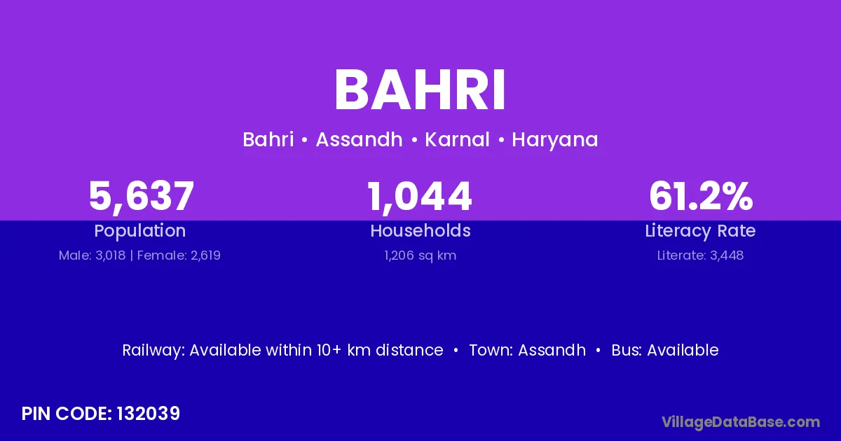 According to Census 2011 information, the village code of Bahri village is 132039.