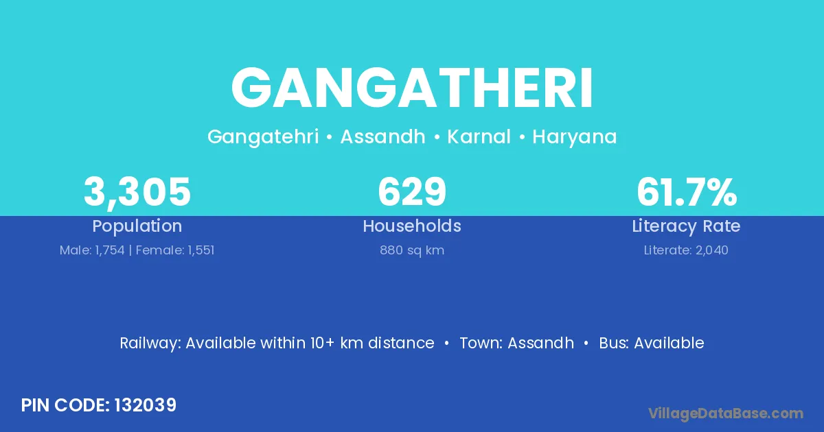 Gangatheri village has a total population of 3,305 people, of which 1,754 are males and 1,551 are females.