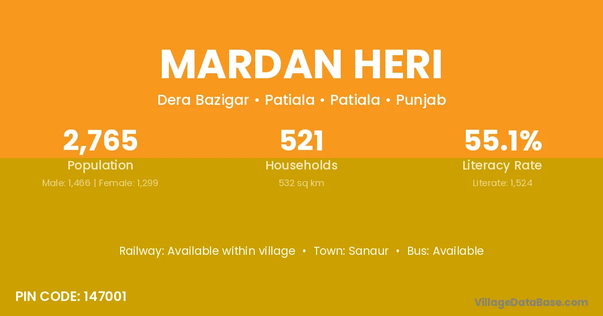 According to Census 2011 information, the village code of Mardan Heri village is 132039.
