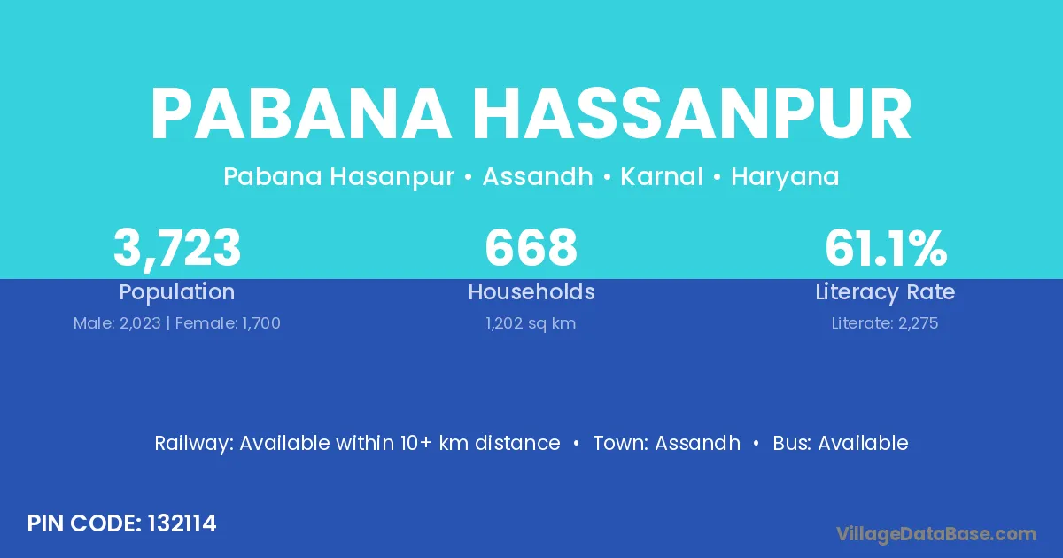 Assandh is the nearest town to Pabana Hassanpur village for major economic activities