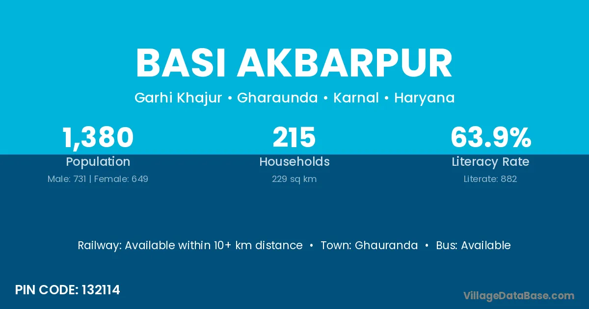 Basi Akbarpur village has a total population of 1,380 people, of which 731 are males and 649 are females.