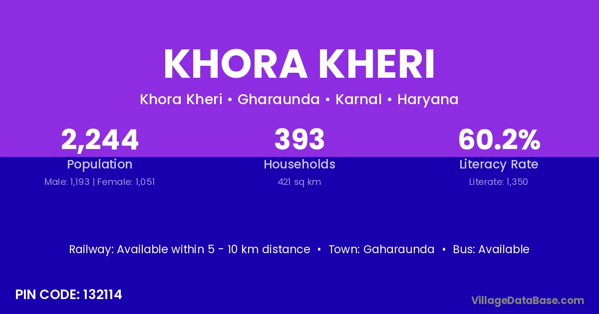 According to Census 2011 information, the village code of Khora Kheri village is 132114.
