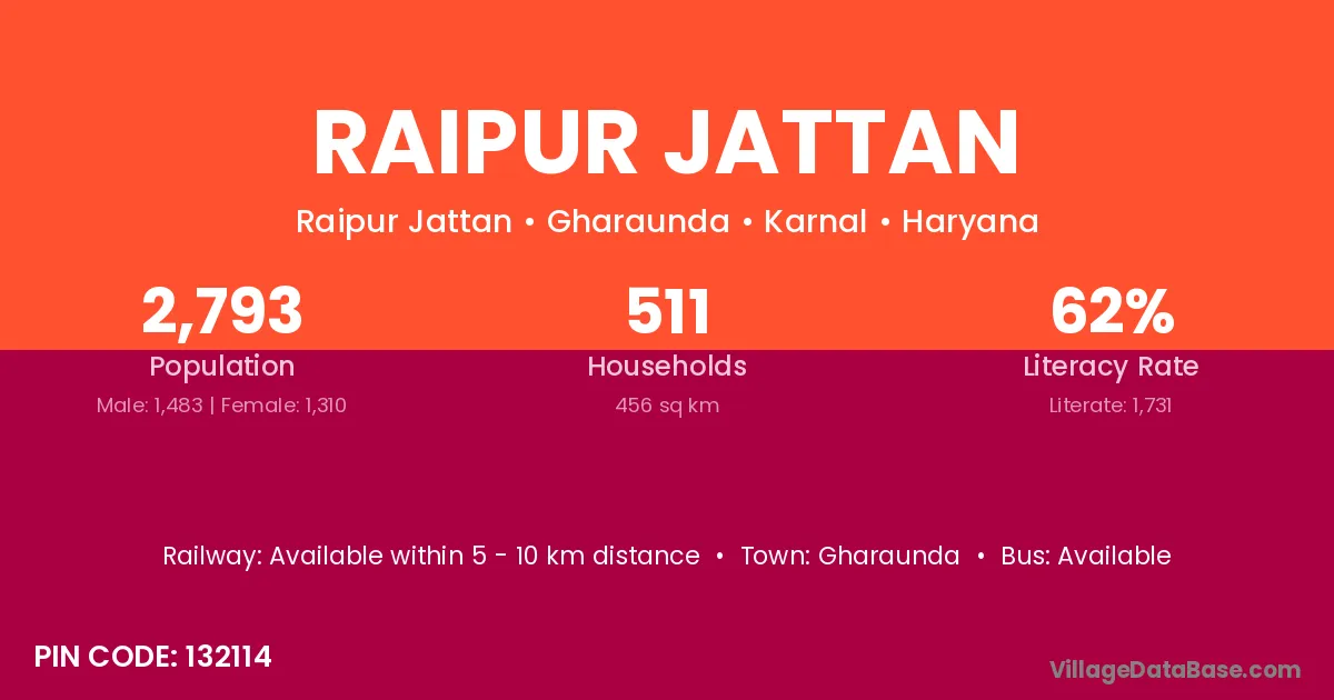 Gharaunda is the nearest town to Raipur Jattan village for major economic activities
