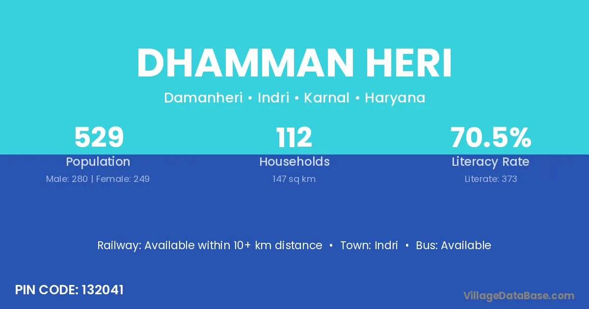 Dhamman Heri village has a total population of 529 people, of which 280 are males and 249 are females.