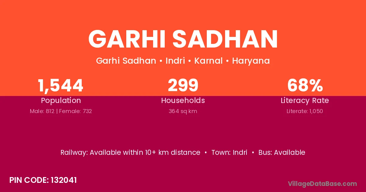 Garhi Sadhan village has a total population of 1,544 people, of which 812 are males and 732 are females.