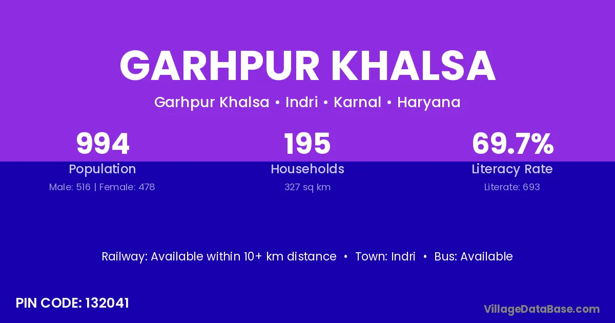 Indri is the nearest town to Garhpur Khalsa village for major economic activities