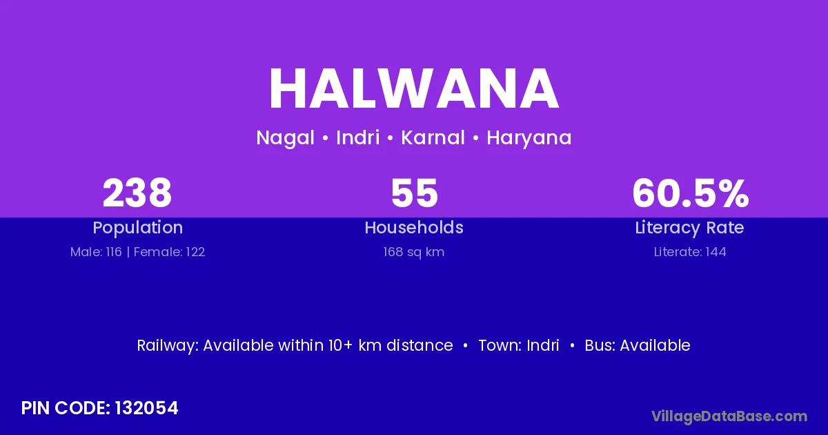 According to Census 2011 information, the village code of Halwana village is 132054.
