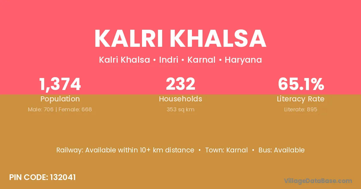 According to Census 2011 information, the village code of Kalri Khalsa village is 132041.
