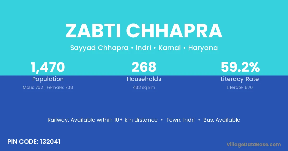 Indri is the nearest town to Zabti Chhapra village for major economic activities