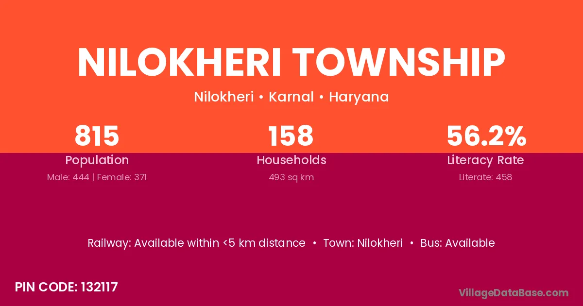 Nilokheri Township village has a total population of 815 people, of which 444 are males and 371 are females.