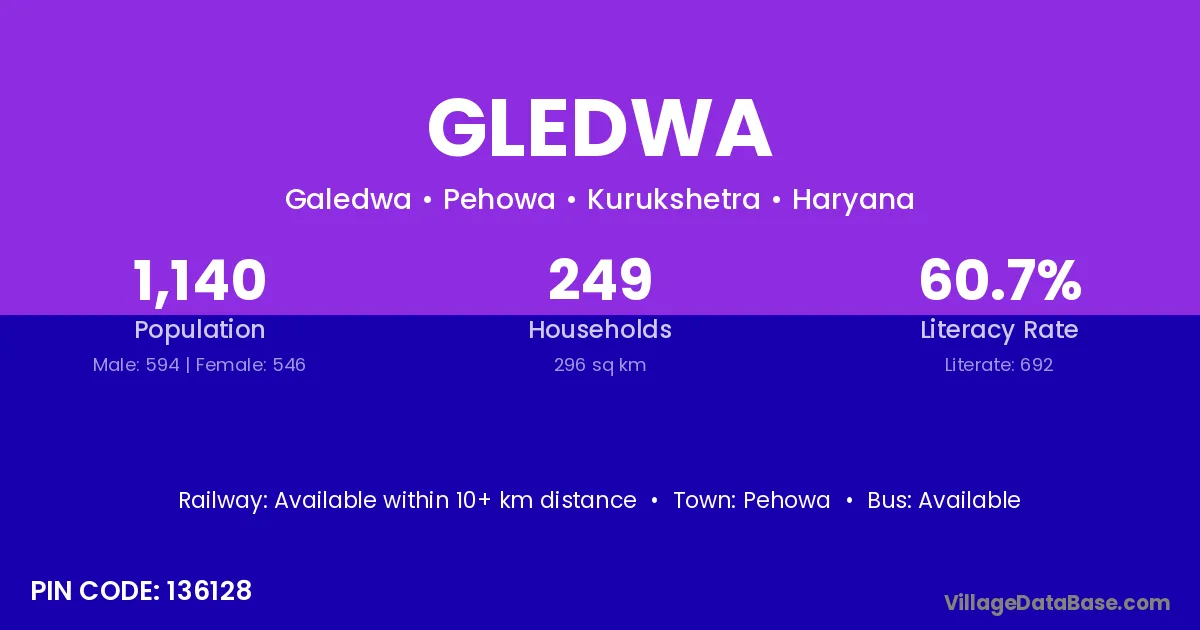 Pehowa is the nearest town to Gledwa village for major economic activities