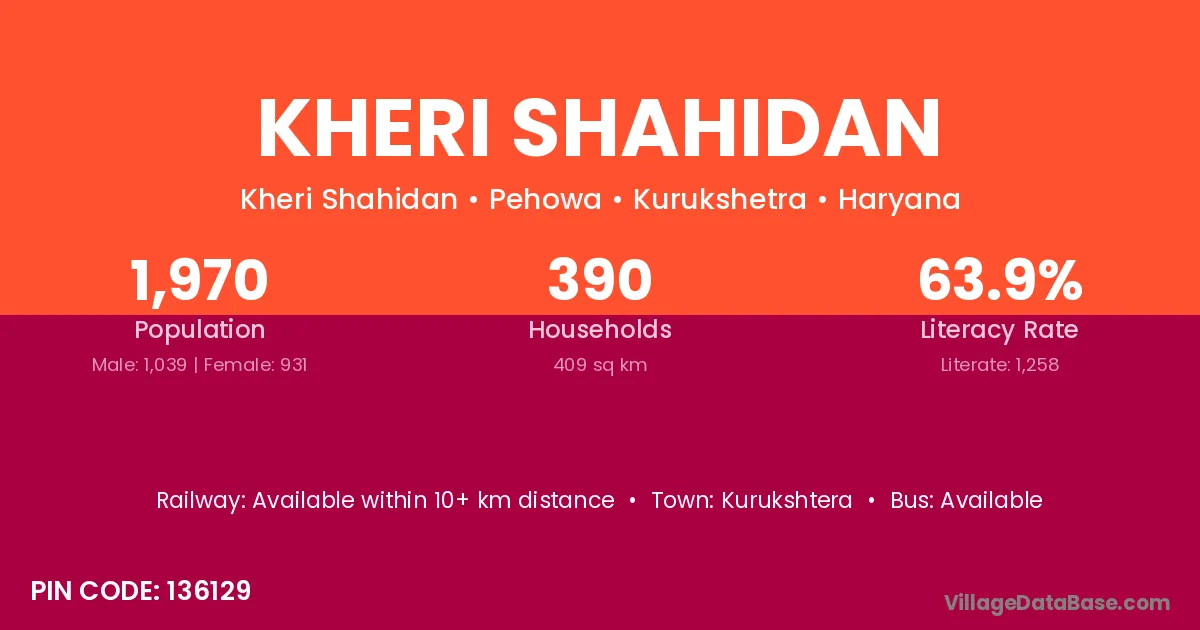 Kheri Shahidan village has a total population of 1,970 people, of which 1,039 are males and 931 are females.
