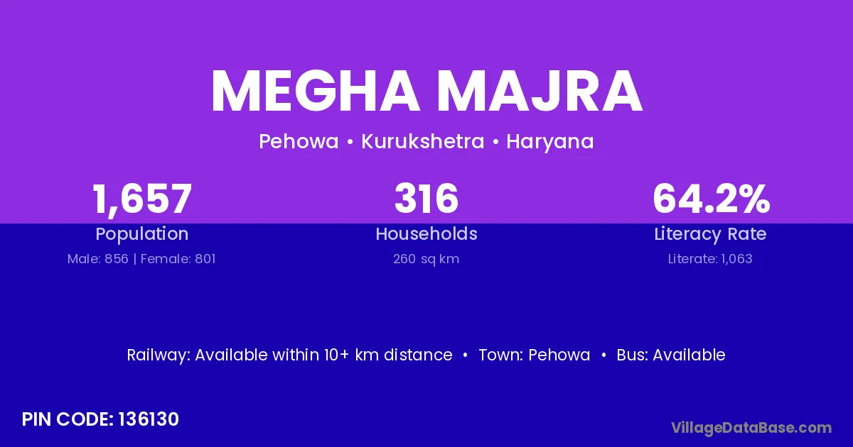 Pehowa is the nearest town to Megha Majra village for major economic activities