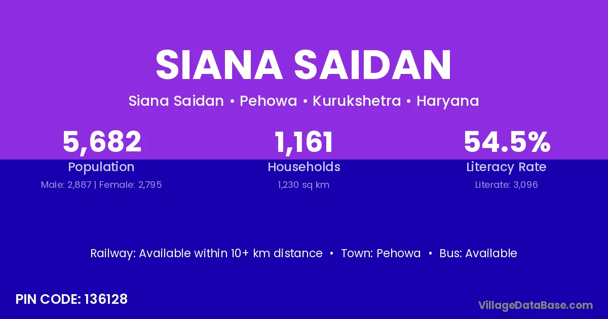 Pehowa is the nearest town to Siana Saidan village for major economic activities